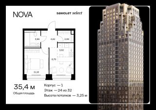 Строим кварталы для жизни с заботой о будущем. Предлагается 1-комнатная квартира премиум-класса 35,36 кв.м в корпусе 1 на 24 этаже, в ЖК "NOVA"