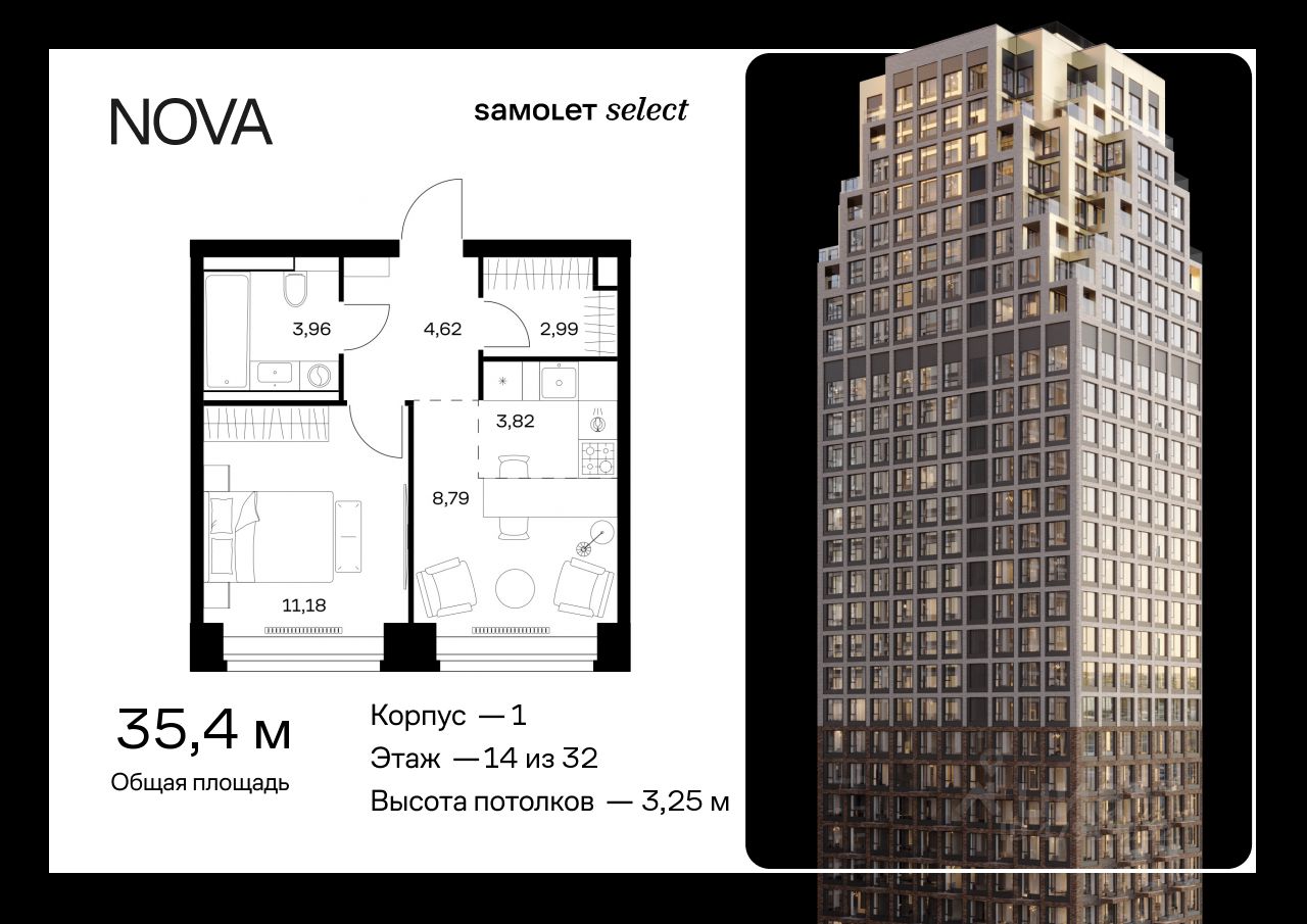Строим кварталы для жизни с заботой о будущем. Предлагается 1-комнатная квартира премиум-класса 35,36 кв.м в корпусе 1 на 14 этаже, в ЖК "NOVA"