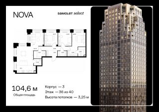 Строим кварталы для жизни с заботой о будущем. Предлагается 3-комнатная квартира премиум-класса 104,59 кв.м в корпусе 3 на 36 этаже, в ЖК "NOVA"