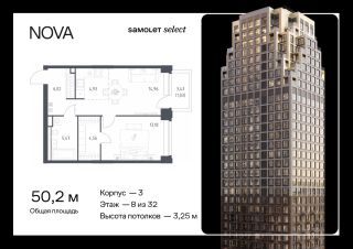 Строим кварталы для жизни с заботой о будущем. Предлагается 1-комнатная квартира премиум-класса 50,15 кв.м в корпусе 3 на 8 этаже, в ЖК "NOVA"