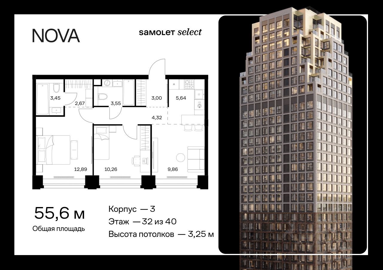 Строим кварталы для жизни с заботой о будущем. Предлагается 2-комнатная квартира премиум-класса 55,64 кв.м в корпусе 3 на 32 этаже, в ЖК "NOVA"