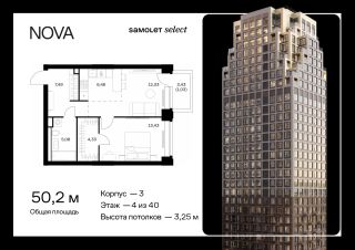 Строим кварталы для жизни с заботой о будущем. Предлагается 1-комнатная квартира премиум-класса 50,15 кв.м в корпусе 3 на 4 этаже, в ЖК "NOVA"