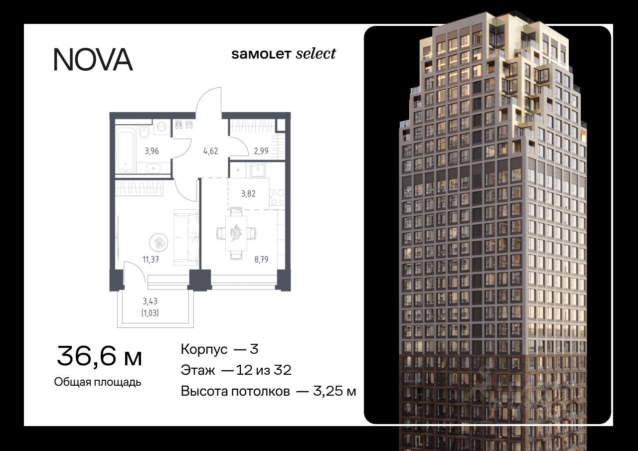 Строим кварталы для жизни с заботой о будущем. Предлагается 1-комнатная квартира премиум-класса 36,58 кв.м в корпусе 3 на 12 этаже, в ЖК "NOVA"