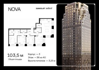 Строим кварталы для жизни с заботой о будущем. Предлагается 3-комнатная квартира премиум-класса 103,51 кв.м в корпусе 3 на 36 этаже, в ЖК "NOVA"