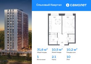 Строим кварталы для жизни с заботой о будущем. Предлагается 1-комнатная квартира комфорт-класса 31,6 кв.м в корпусе 2.1 на 10 этаже, в ЖК "Ольховый Квартал"