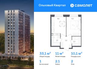 Строим кварталы для жизни с заботой о будущем. Предлагается 1-комнатная квартира комфорт-класса 33,1 кв.м в корпусе 2.1 на 2 этаже, в ЖК "Ольховый Квартал"
