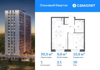 Строим кварталы для жизни с заботой о будущем. Предлагается 1-комнатная квартира комфорт-класса 35,5 кв.м в корпусе 2.1 на 16 этаже, в ЖК "Ольховый Квартал"