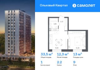 Строим кварталы для жизни с заботой о будущем. Предлагается 1-комнатная квартира комфорт-класса 33,5 кв.м в корпусе 2.2 на 9 этаже, в ЖК "Ольховый Квартал"