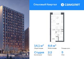 Строим кварталы для жизни с заботой о будущем. Предлагается квартира студия комфорт-класса 14,1 кв.м в корпусе 2.2 на 5 этаже, в ЖК "Ольховый Квартал"