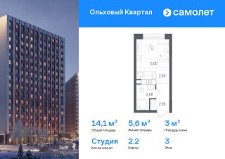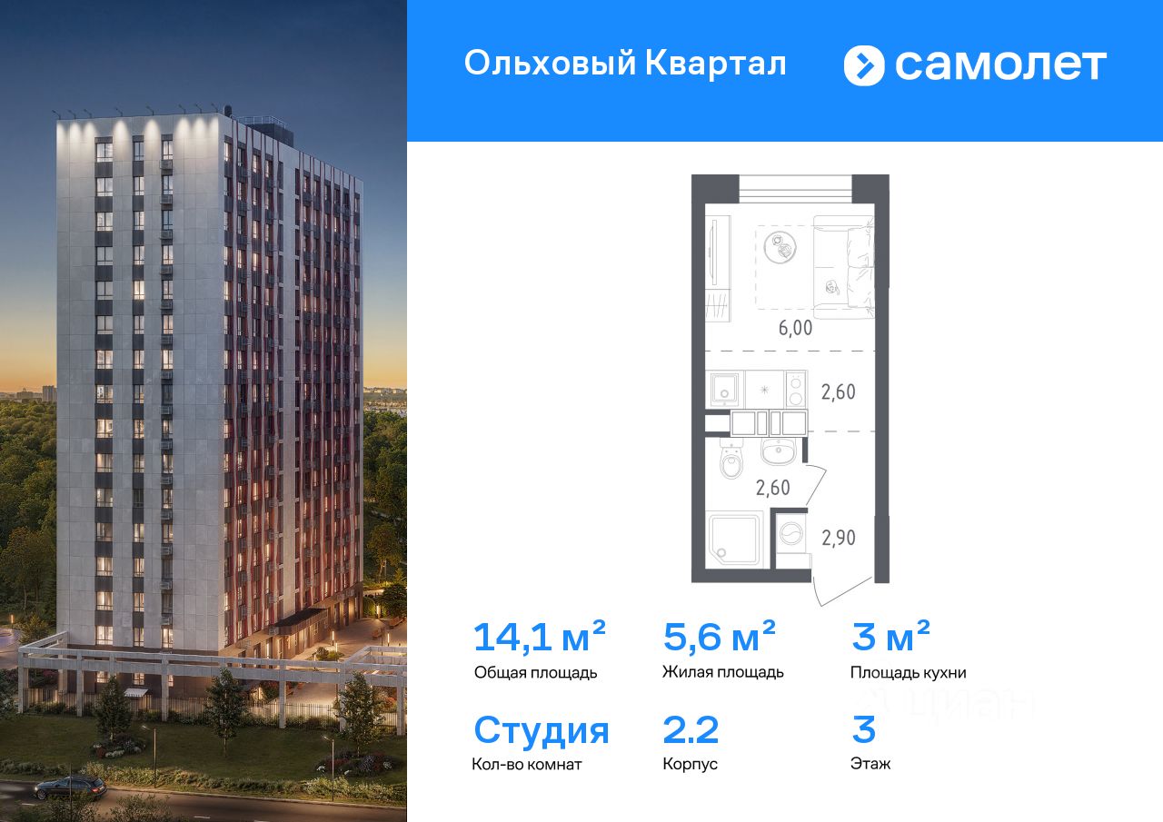 Строим кварталы для жизни с заботой о будущем. Предлагается квартира студия комфорт-класса 14,1 кв.м в корпусе 2.2 на 3 этаже, в ЖК "Ольховый Квартал"