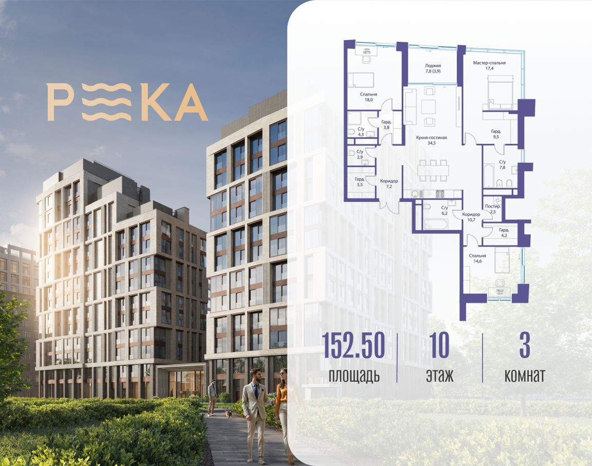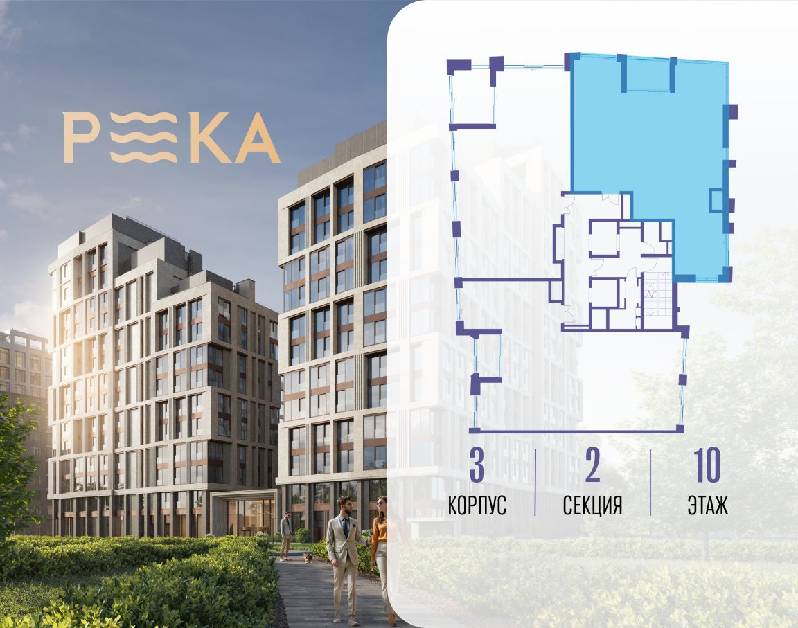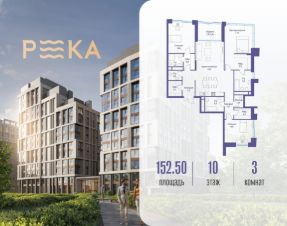 Продается просторная квартира площадью 152.50 м2 в жилом комплексе РЕКА. Квартира находится во 2 секции корпуса 3 (будет введен в эксплуатацию в 4 кв. 2026). Этаж 10-й из 12.