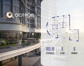 Продаётся многокомнатная квартира от застройщика: общая площадь 165.10 м², жилая 109.80 м², кухня 17.30 м², 6, жилой квартал "Остров 7", корпус 4 (7 квартал) (секция 3). срок сдачи: 4-кв. 2025.