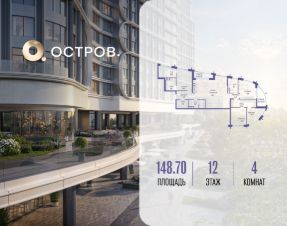 Продаётся четырехкомнатная квартира от застройщика: общая площадь 148.70 м², жилая 50.40 м², кухня 43.10 м², 12, жилой квартал "Остров 7", корпус 5 (7 квартал) (секция 1). срок сдачи: 4-кв. 2025.