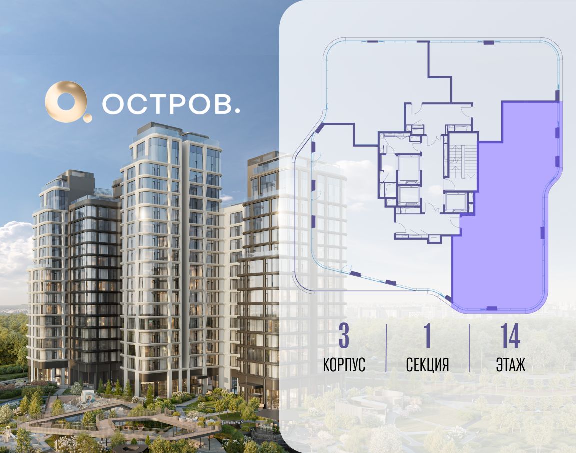 Продаётся 4-комн. квартира от застройщика: общая площадь 151.50 м², жилая 64.40 м², кухня 42.00 м², 14-й этаж, жилой квартал "Остров 12", корпус 3 (секция 1). Срок сдачи: 1 квартал 2029 года.