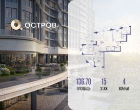 Продаётся четырехкомнатная квартира от застройщика: общая площадь 136.70 м², жилая 37.36 м², кухня 41.70 м², 15, жилой квартал "Остров 7", корпус 3 (7 квартал) (секция 2). срок сдачи: 4-кв. 2025.