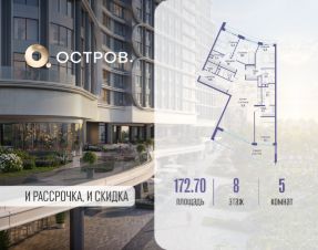 Продаётся многокомнатная квартира от застройщика: общая площадь 172.70 м², жилая 53.80 м², кухня 51.90 м², 8, жилой квартал "Остров 7", корпус 3 (7 квартал) (секция 2). срок сдачи: 4-кв. 2025.