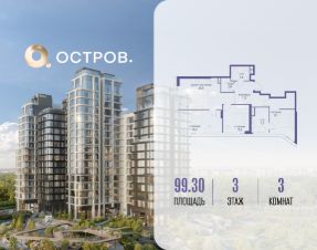 Продаётся 3-комн. квартира от застройщика: общая площадь 99.30 м², жилая 46.90 м², кухня 25.80 м², 3-й этаж, жилой квартал "Остров 12", корпус 6 (секция 1). Срок сдачи: 1 квартал 2029 года.