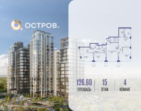 Продаётся четырехкомнатная квартира от застройщика: общая площадь 126.60 м², жилая 61.10 м², кухня 25.70 м², 15, жилой квартал "Остров 12", корпус 3 (12.1 квартал) (секция 1). срок сдачи: 4-кв. 2025.