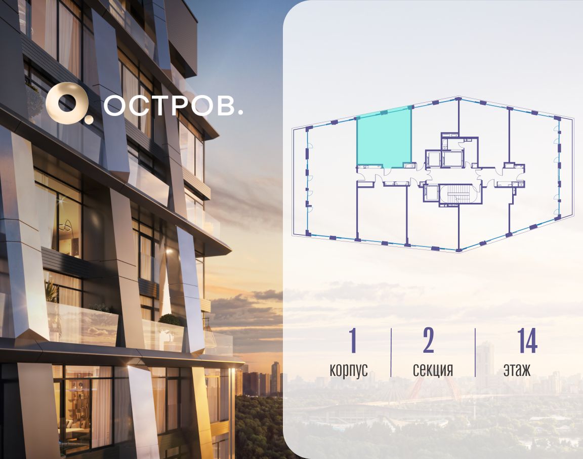 ОСТРОВ.12.1 - часть жилого комплекса на западе Москвы, в 15 минутах езды от центра. Это настоящий заповедник посреди большого города, в окружении реки и 650 га заповедников. Здесь все необходимое находится по соседству: от детского сада до супермаркета, от фитнес-зала до серфинг-центра. На территории созданы все условия для отдыха и общения: клубная инфраструктура в домах и дворы-парки, набережные и променады, маршруты для спортсменов, детей и возрастных жителей. В нескольких минутах ходьбы расположена станция метро "Мнёвники" БКЛ. На автомобиле - 10 минут до Москва-Сити и 15 минут до Садового кольца.