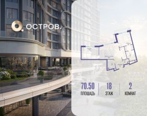Продаётся двухкомнатная квартира от застройщика: общая площадь 70.50 м², жилая 29.50 м², кухня 26.50 м², 18, жилой квартал "Остров 7", корпус 7 (7 квартал) (секция 1). срок сдачи: 4-кв. 2025.
