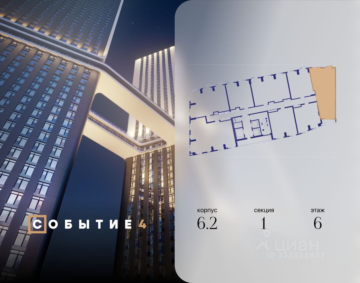 Продаётся 2-комнатная квартира от застройщика: общая площадь 78.40 м², жилая 29.90 м², кухня 22.80 м², 6-й этаж, жилой квартал "Событие-6", корпус 2 (секция 1) Срок сдачи: 1 квартал 2029 года.