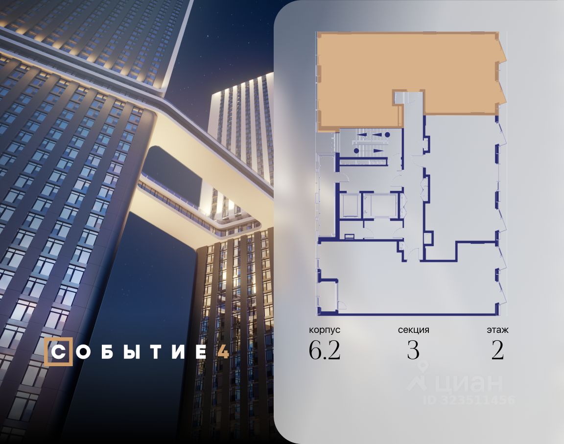 Продаётся 3-комнатная квартира от застройщика: общая площадь 104.50 м², жилая 43.70 м², кухня 29.00 м², 2-й этаж, жилой квартал "Событие-6", корпус 2 (секция 3) Срок сдачи: 1 квартал 2029 года.