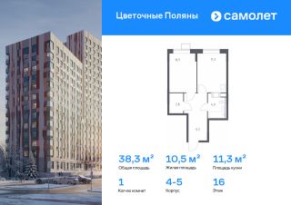 Строим кварталы для жизни с заботой о будущем. Предлагается 1-комнатная квартира комфорт-класса 38,3 кв.м в корпусе 4-5 на 16 этаже, в ЖК "Цветочные Поляны"