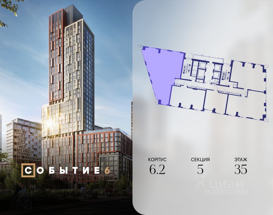 Продаётся 4-комнатная квартира от застройщика: общая площадь 131.00 м², жилая 60.00 м², кухня 28.20 м², 35-й этаж, жилой квартал "Событие-6", корпус 2 (секция 5) Срок сдачи: 1 квартал 2029 года.