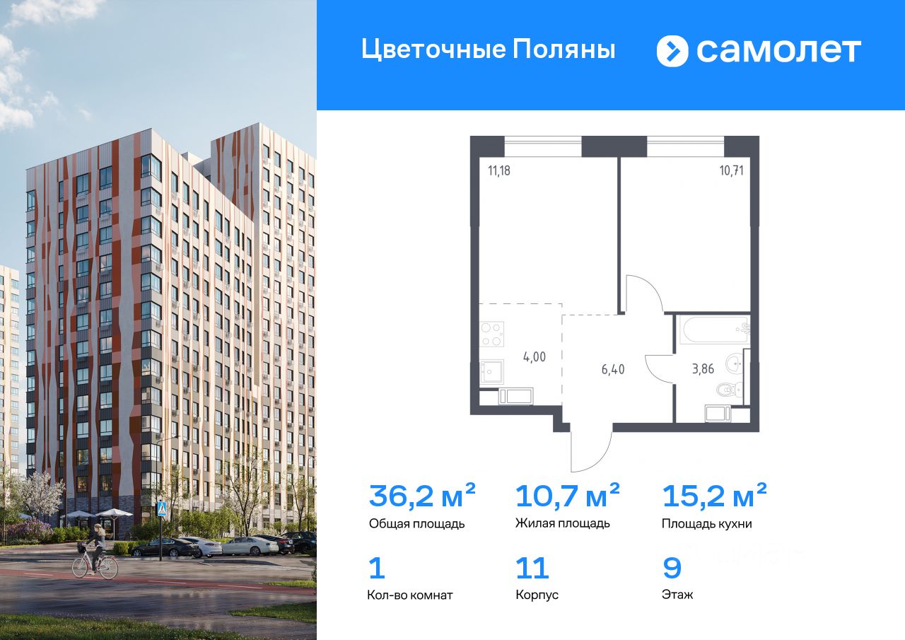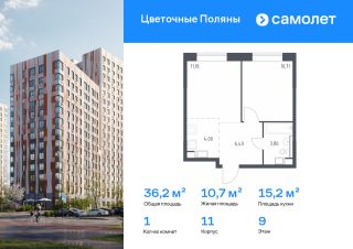 Строим кварталы для жизни с заботой о будущем. Предлагается 1-комнатная квартира комфорт-класса 36,15 кв.м в корпусе 11 на 9 этаже, в ЖК "Цветочные Поляны"