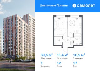 Строим кварталы для жизни с заботой о будущем. Предлагается 1-комнатная квартира комфорт-класса 33,46 кв.м в корпусе 12 на 17 этаже, в ЖК "Цветочные Поляны"