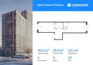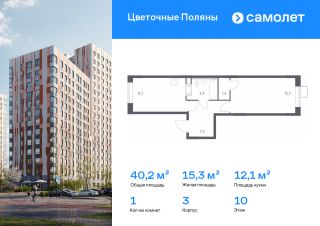 Строим кварталы для жизни с заботой о будущем. Предлагается 1-комнатная квартира комфорт-класса 40,2 кв.м в корпусе 3 на 10 этаже, в ЖК "Цветочные Поляны"