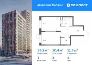 Строим кварталы для жизни с заботой о будущем. Предлагается 1-комнатная квартира комфорт-класса 38,2 кв.м в корпусе 3 на 8 этаже, в ЖК "Цветочные Поляны"