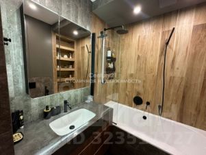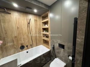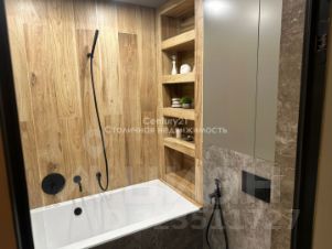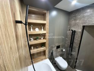 сан.узел с отделкой из керамогранита со встроенными полками и дорогой сантехникой