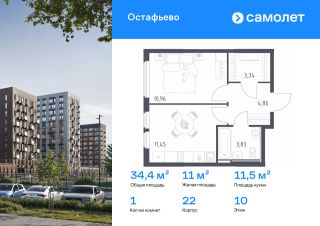 Строим кварталы для жизни с заботой о будущем. Предлагается 1-комнатная квартира комфорт-класса 34,44 кв.м в корпусе 22 на 10 этаже, в ЖК "Остафьево"
