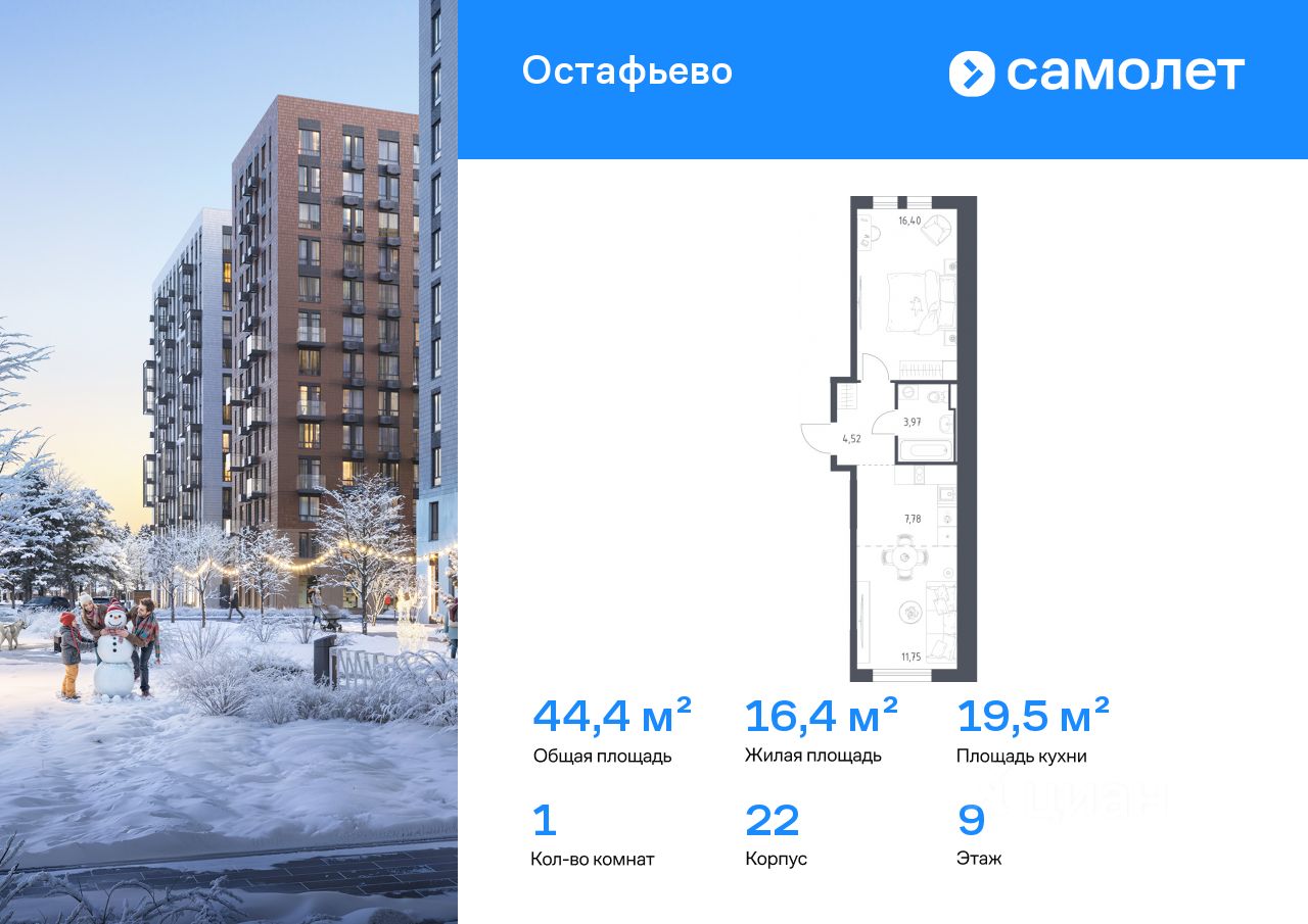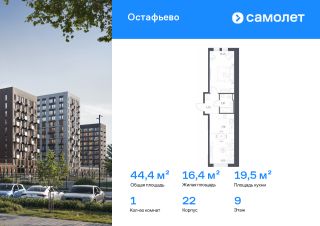 Строим кварталы для жизни с заботой о будущем. Предлагается 1-комнатная квартира комфорт-класса 44,42 кв.м в корпусе 22 на 9 этаже, в ЖК "Остафьево"