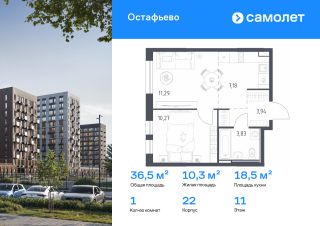 Строим кварталы для жизни с заботой о будущем. Предлагается 1-комнатная квартира комфорт-класса 36,51 кв.м в корпусе 22 на 11 этаже, в ЖК "Остафьево"