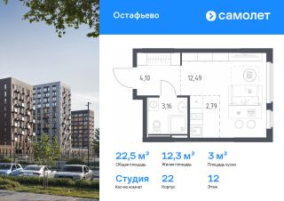 Строим кварталы для жизни с заботой о будущем. Предлагается квартира студия комфорт-класса 22,54 кв.м в корпусе 22 на 12 этаже, в ЖК "Остафьево"