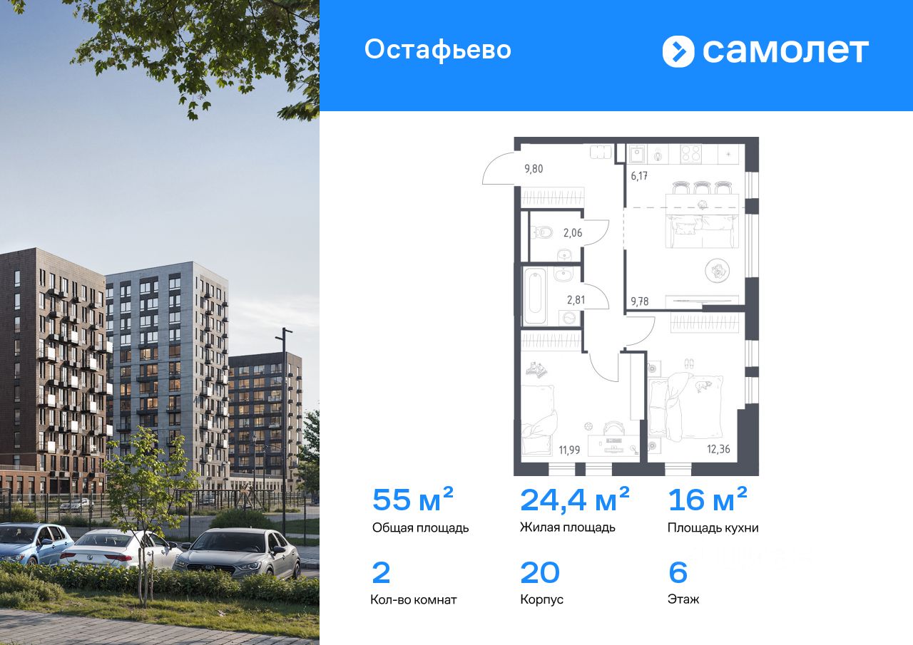Строим кварталы для жизни с заботой о будущем. Предлагается 2-комнатная квартира комфорт-класса 54,97 кв.м в корпусе 20 на 6 этаже, в ЖК "Остафьево"