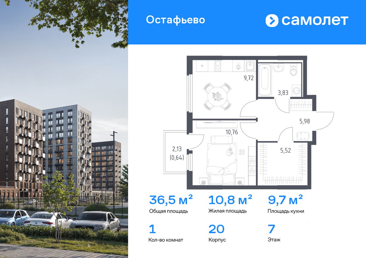 Строим кварталы для жизни с заботой о будущем. Предлагается 1-комнатная квартира комфорт-класса 36,45 кв.м в корпусе 20 на 7 этаже, в ЖК "Остафьево"