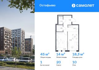 Строим кварталы для жизни с заботой о будущем. Предлагается 1-комнатная квартира комфорт-класса 44,95 кв.м в корпусе 20 на 10 этаже, в ЖК "Остафьево"