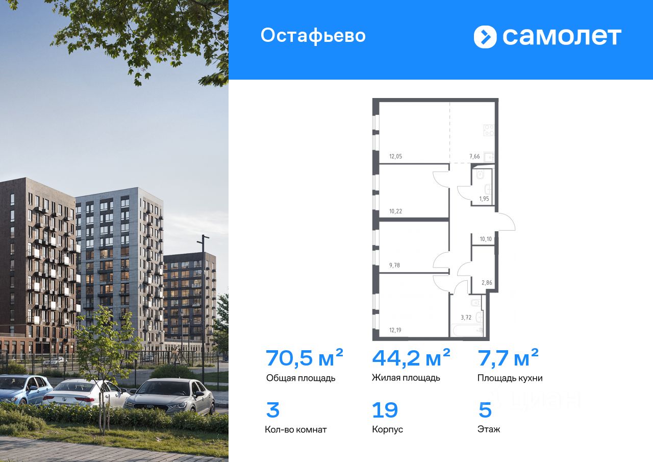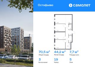 Строим кварталы для жизни с заботой о будущем. Предлагается 3-комнатная квартира комфорт-класса 70,53 кв.м в корпусе 19 на 5 этаже, в ЖК "Остафьево"