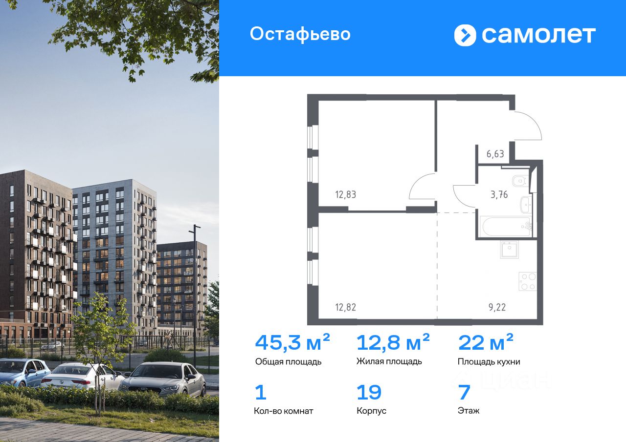 Строим кварталы для жизни с заботой о будущем. Предлагается 1-комнатная квартира комфорт-класса 45,26 кв.м в корпусе 19 на 7 этаже, в ЖК "Остафьево"