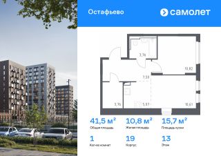 Строим кварталы для жизни с заботой о будущем. Предлагается 1-комнатная квартира комфорт-класса 41,52 кв.м в корпусе 19 на 13 этаже, в ЖК "Остафьево"