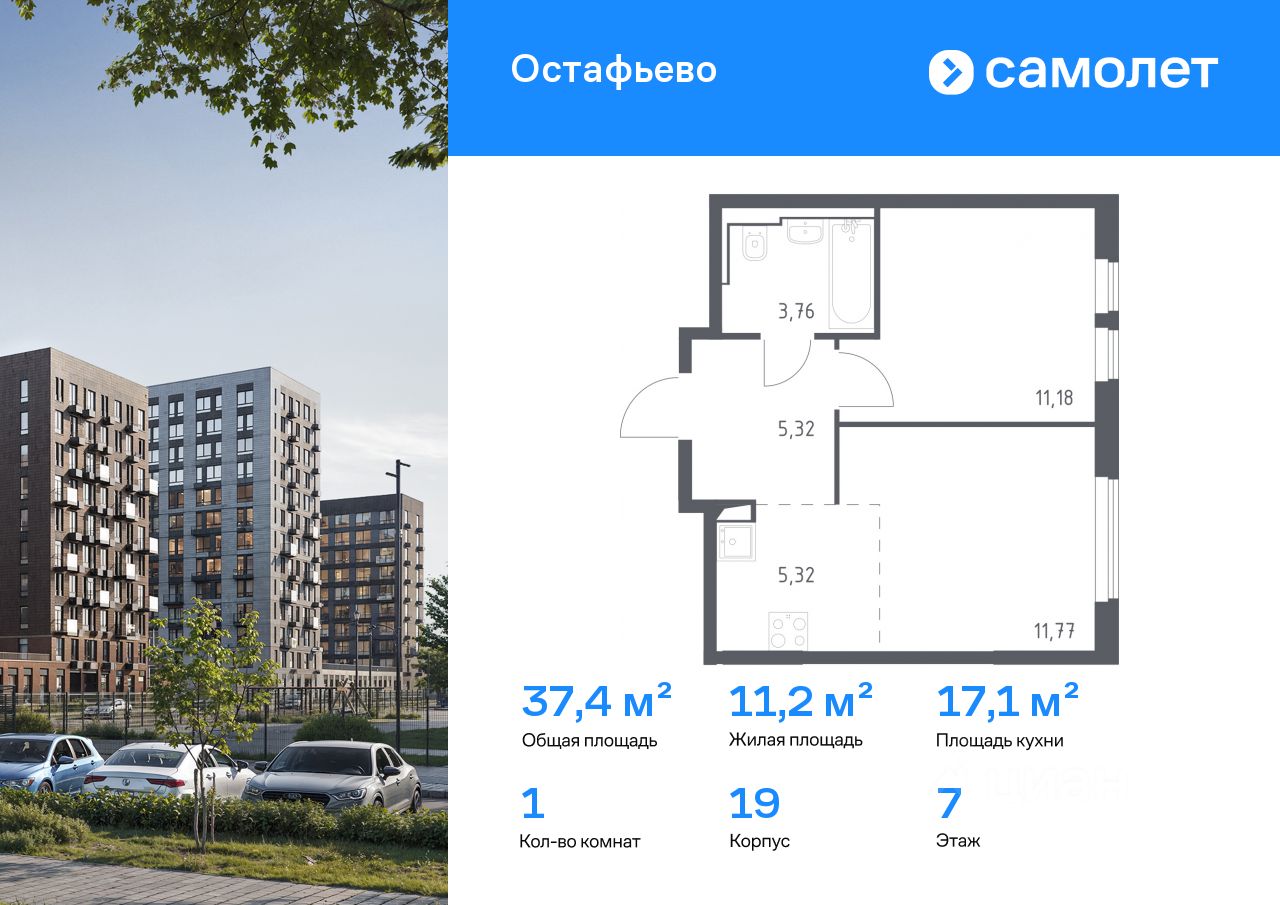 Строим кварталы для жизни с заботой о будущем. Предлагается 1-комнатная квартира комфорт-класса 37,35 кв.м в корпусе 19 на 7 этаже, в ЖК "Остафьево"