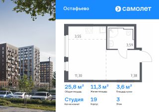Строим кварталы для жизни с заботой о будущем. Предлагается квартира студия комфорт-класса 25,82 кв.м в корпусе 19 на 3 этаже, в ЖК "Остафьево"