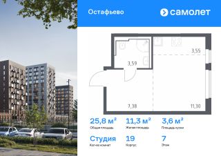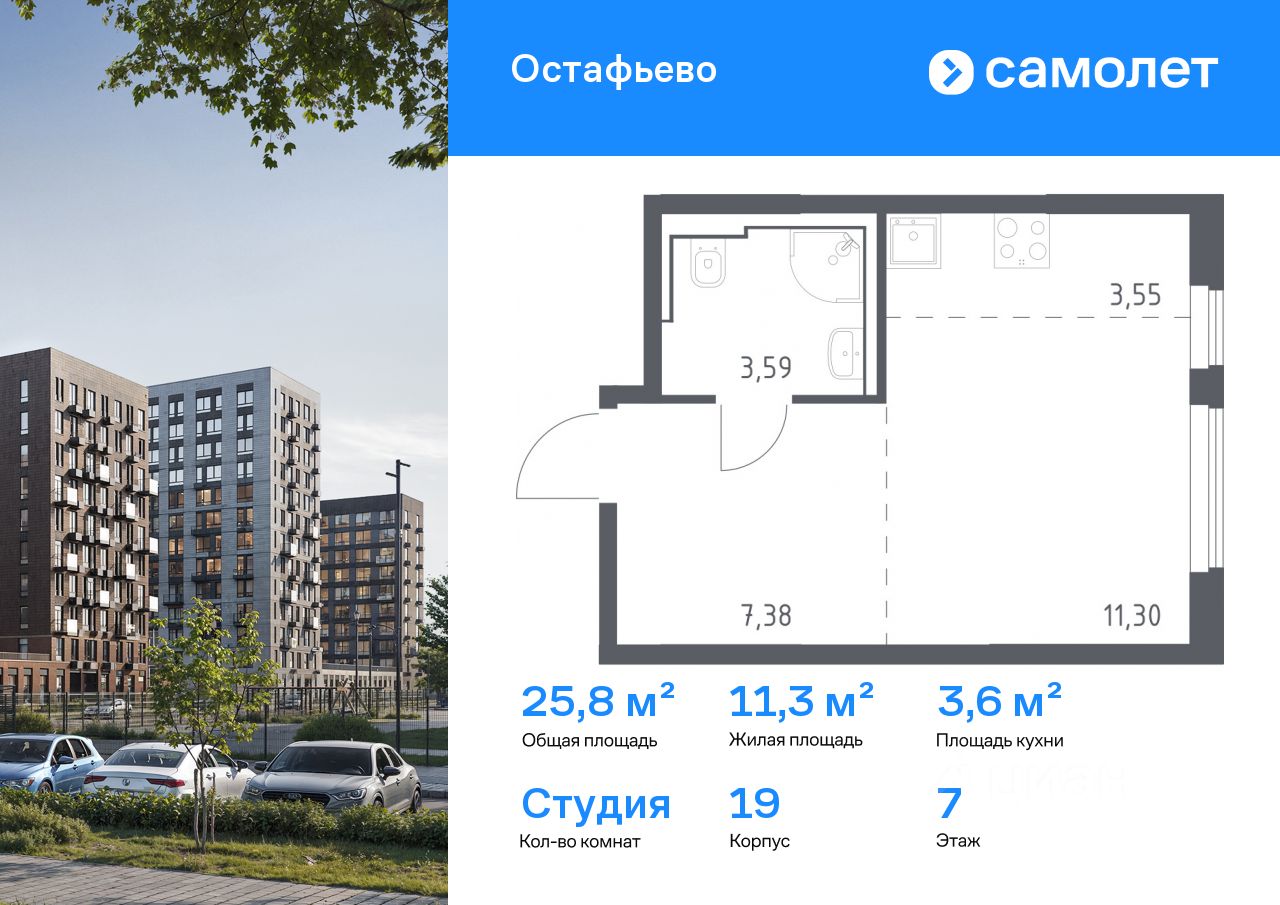 Строим кварталы для жизни с заботой о будущем. Предлагается квартира студия комфорт-класса 25,82 кв.м в корпусе 19 на 7 этаже, в ЖК "Остафьево"
