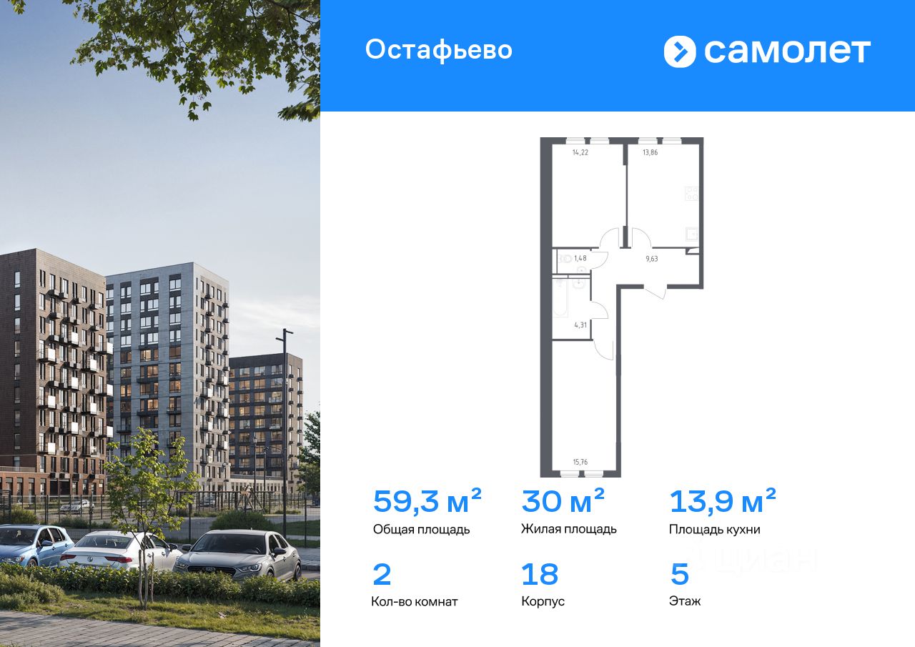 Строим кварталы для жизни с заботой о будущем. Предлагается 2-комнатная квартира комфорт-класса 59,26 кв.м в корпусе 18 на 5 этаже, в ЖК "Остафьево"