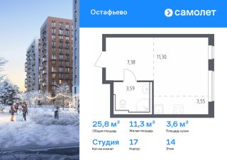 Строим кварталы для жизни с заботой о будущем. Предлагается квартира студия комфорт-класса 25,82 кв.м в корпусе 17 на 14 этаже, в ЖК "Остафьево"