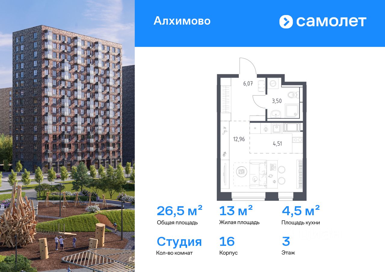 Строим кварталы для жизни с заботой о будущем. Предлагается квартира студия комфорт-класса 26,5 кв.м в корпусе 16 на 3 этаже, в ЖК "Алхимово"