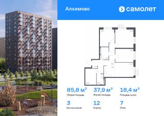 Строим кварталы для жизни с заботой о будущем. Предлагается 3-комнатная квартира комфорт-класса 85,8 кв.м в корпусе 12 на 7 этаже, в ЖК "Алхимово"